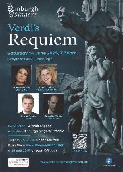 Greyfriars Kirk should be an excellent acoustic for this talented Edinburgh group to be put through their paces in Verdi's masterpiece. The work of Alistair Digges and most of the soloists will be familiar to anyone who has followed the development of Opera Bohemia in recent seasons.